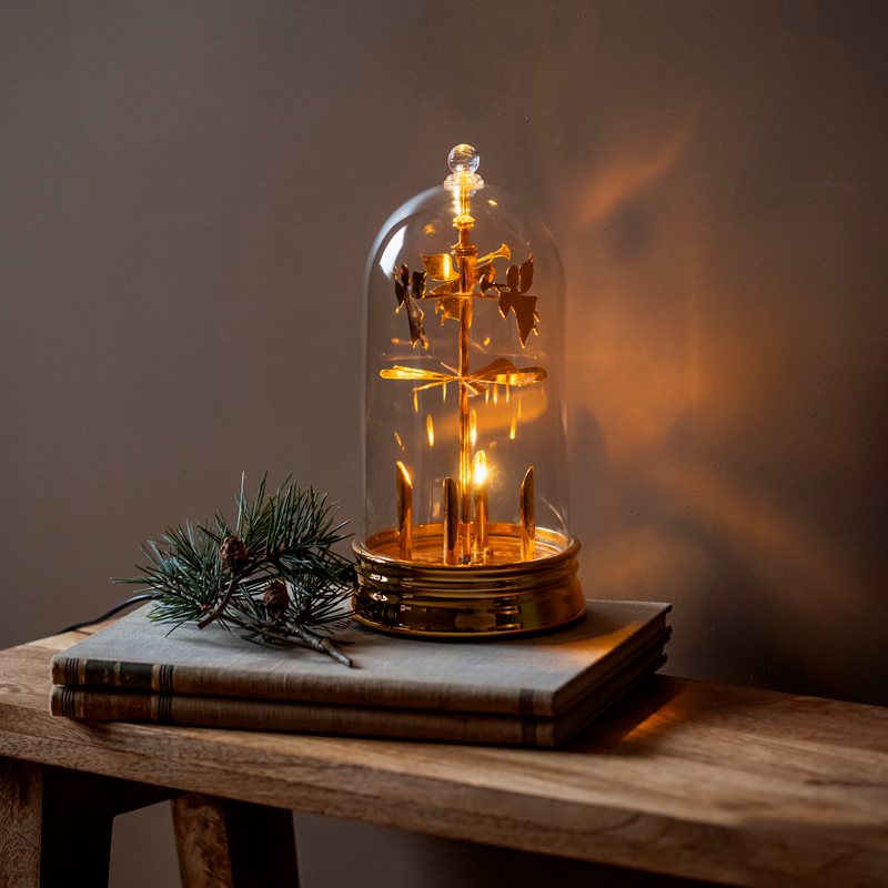 Skapa härlig stämning med ett klassiskt snurrande änglaspel i modern tappning – nu med varmvitt LED-ljus. En vacker bordsdekoration som passar perfekt i fönster, på hyllor eller som gåva. Den tidlösa designen och de glittrande änglarna väcker både nostalgi och glädje. Perfekt som juldekoration, present eller stämningshöjare i ditt hem.