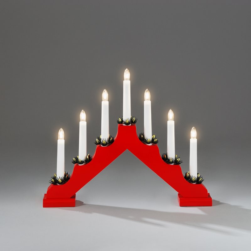 Dekorativ dimbar elljusstake från Konstsmide i klassiskt rött trä med 7 vackra ljus som sprider ett varmt, inbjudande sken. Perfekt för att skapa en mysig julstämning i ditt hem, med justerbar ljusstyrka för att passa alla tillfällen. Levereras med utbytbara glödlampor, och den generösa 170 cm anslutningskabeln gör placeringen smidig och flexibel.