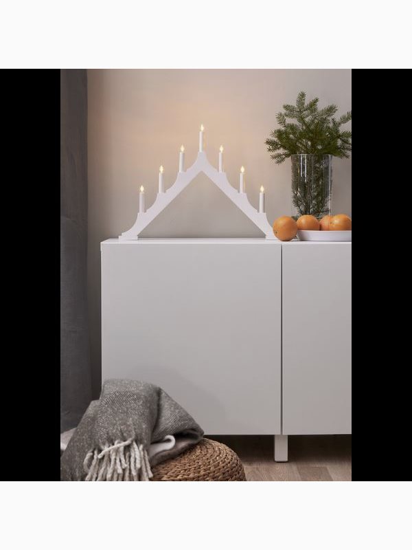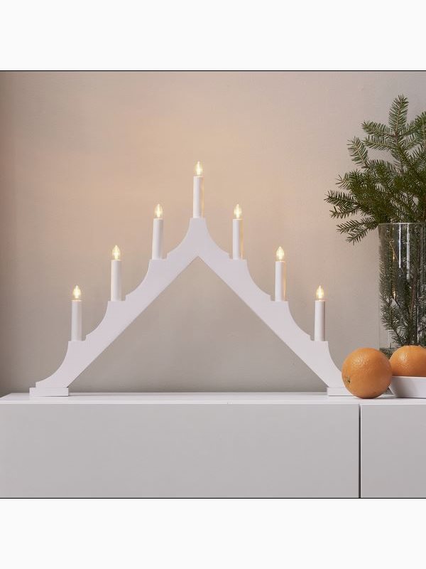 Vit adventsljusstake tillverkad i trä. Klassiskt formad ljusstake med modern touch. Fin ljusbild som skapar den perfekta julstämningen i ditt fönster. Denna produkt har FSC®-märkning.
