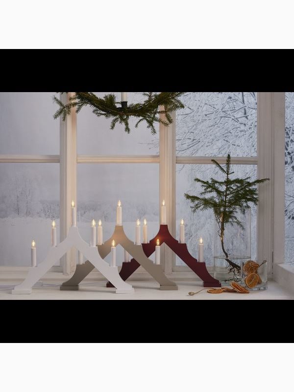 Vit adventsljusstake tillverkad i trä. Klassiskt formad ljusstake med modern touch. Fin ljusbild som skapar den perfekta julstämningen i ditt fönster. Denna produkt har FSC®-märkning.
