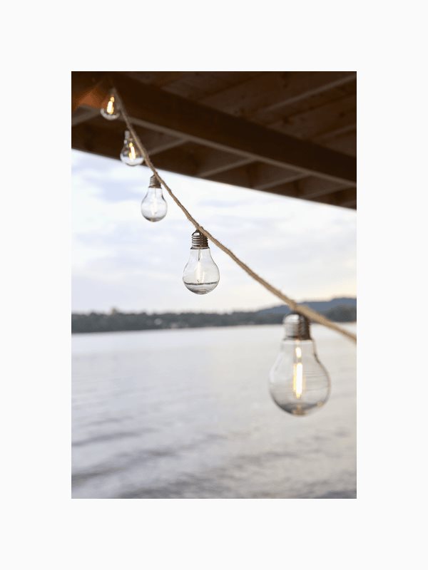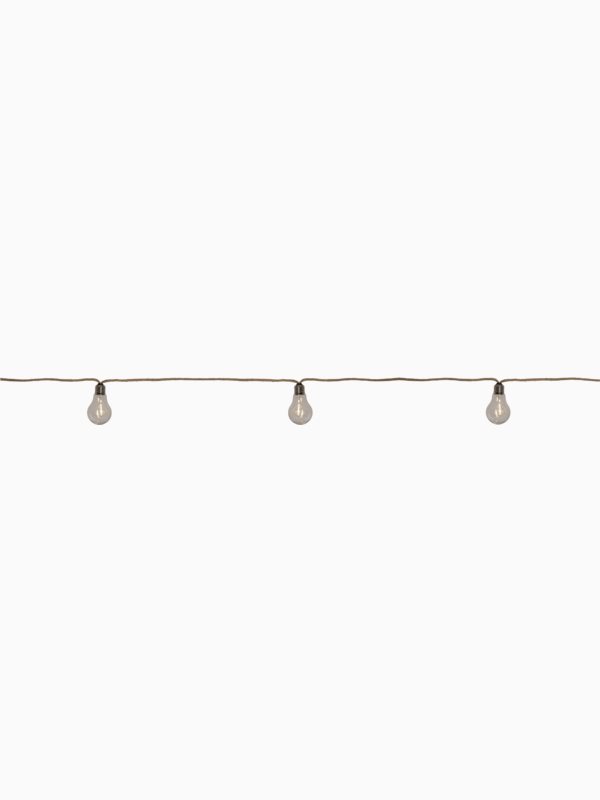 Dekorativ ljusslinga med naturinspirerad kabel klädd i beige juteväv som ger en varm och inbjudande känsla. De 10 varmvit lysande LED-covers sprider ett mjukt ljus som passar perfekt för utomhusmiljöer som altan, trädgård och uteplats. En stämningshöjande ljusslinga som fungerar lika bra till fest som till vardags. Möjlighet att koppla ihop upp till tre slingor (artikel 476-90), vilket medför något lägre ljusstyrka.
