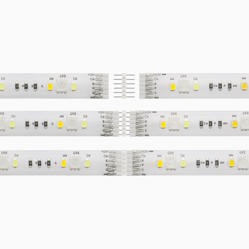 I förpackningen ingår en 6-pin skarvklämma som gör det enkelt att koppla ihop LED-listens delar. Om du behöver kapa förlängningen kan kontaktytorna exponeras i ändarna för att sedan skarvas samman på nytt.