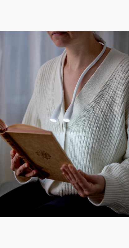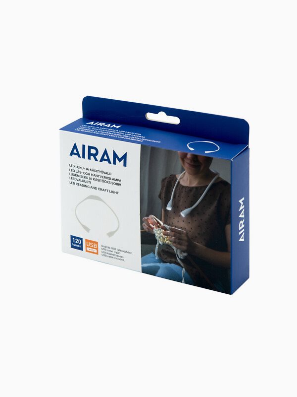 Läs- och handarbetslampan med lätt konstruktion är bokmalens och handarbetsvännens önskeprodukt! Häng lampan runt halsen och låt ljuset skina i din famn. Produkten frigör händerna och låter dig koncentrera dig på arbetet. Ger effektivt ljus från båda ändorna. Ljuseffekten kan justeras i tre steg. USB-laddningsbar, laddningskabel medföljer i förpackningen.